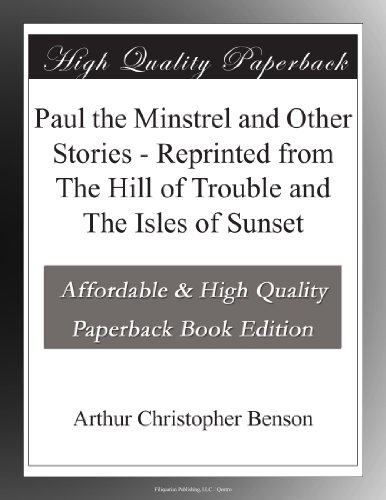 Paul the Minstrel and Other Stories – Reprinted from The Hill of Trouble and The Isles of Sunset is presented here in a high quality paperback edition. This popular classic work by Arthur Christopher Benson is in the English language, and may not include graphics or images from the original edition. If you enjoy the works of Arthur Christopher Benson then we highly recommend this publication for your book collection.
